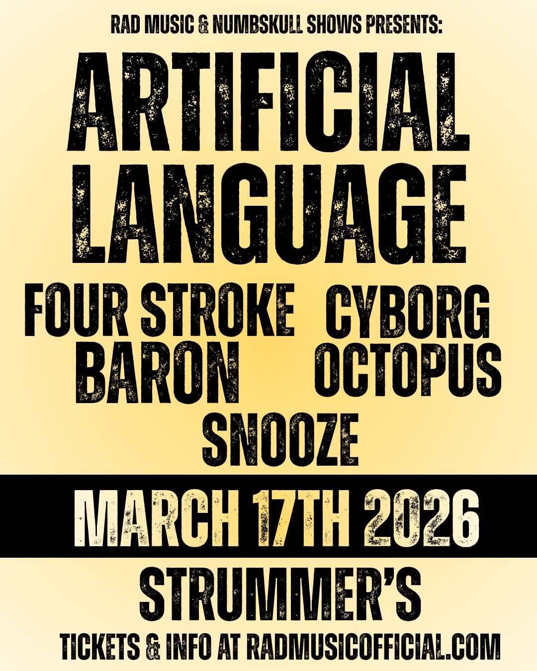 Four Stroke Baron, Cyborg Octopus and Snooze hit Strummer's on RAD Music’s Bday with Artificial Language!! This will be an early show! Tickets are on sale NOW