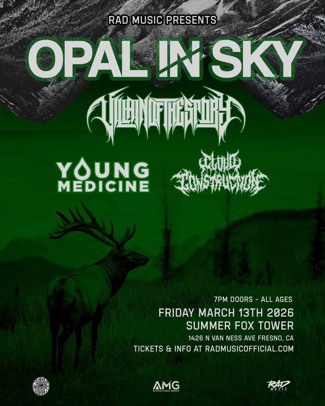 A “Nightmare Weekend” is a term occasionally used by those in the music industry to describe a weekend with way too many shows. Honestly, I think it’s sick. It shows how well a scene is doing imo. This Friday(the 13th) we’ve got an especially fun one. Canadian metalcore twins, Opal In Sky, are touring the states for the very first time and are hitting Summer Fox Tower with Villain of the Story, Young Medicine and Cloud Construction!! Get tickets while you can NOW!