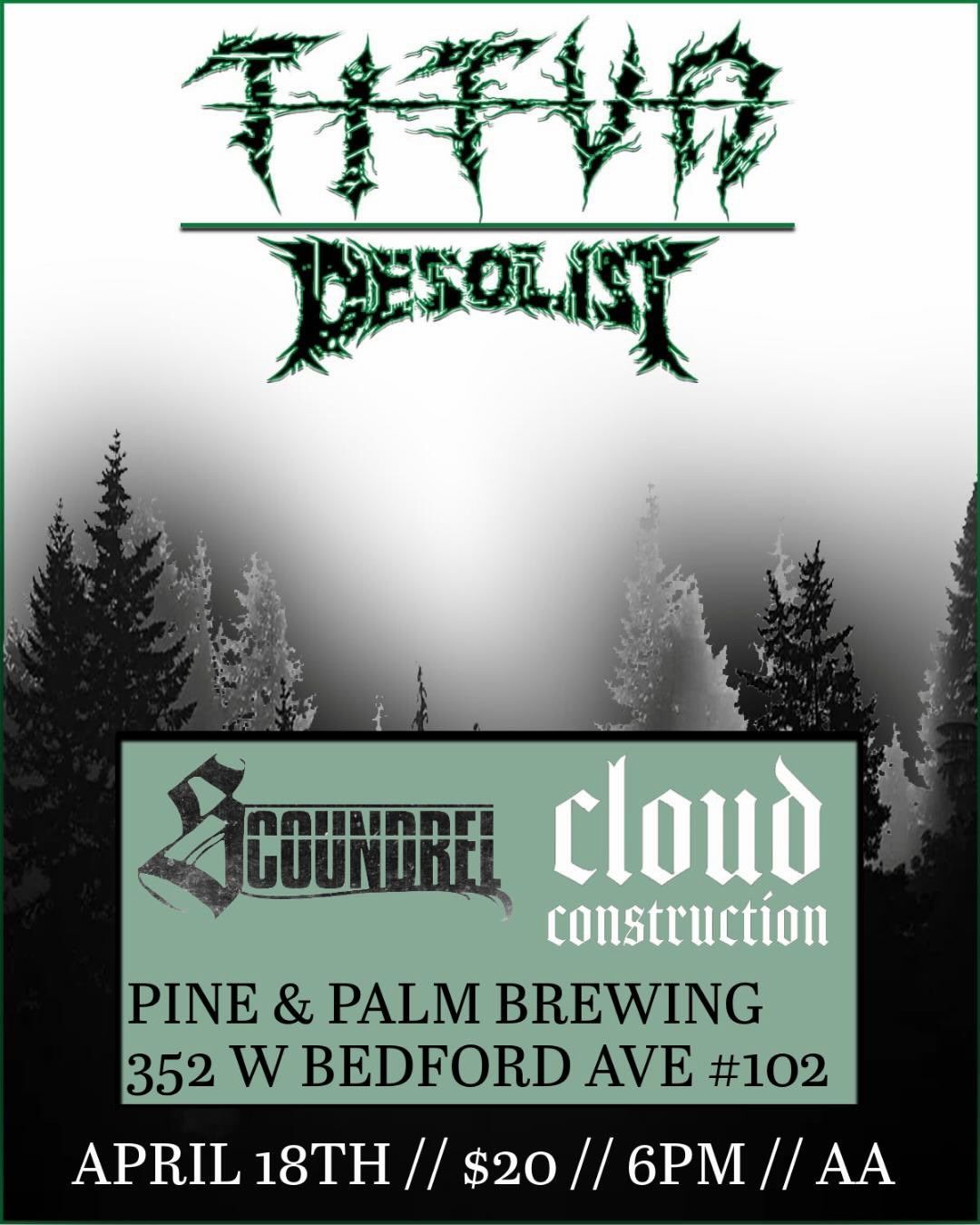 NorCal heavy hitters, TITVN, are hitting Pine & Palm Brewing this Saturday with Desolist, Scoundrel and Cloud Construction! Snag tix now